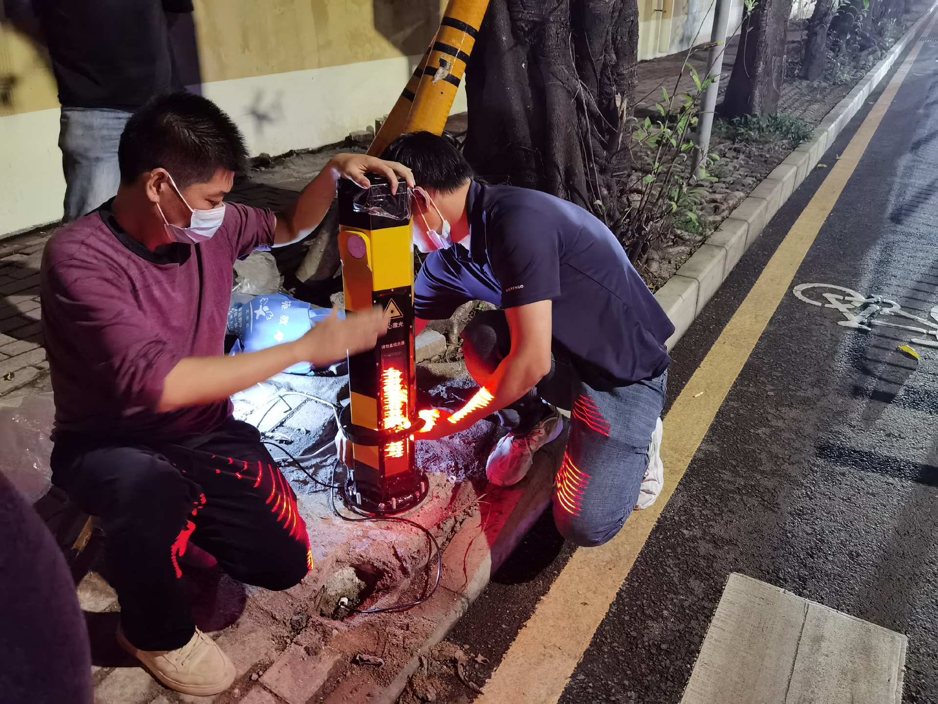廣東省深圳市布吉幼兒園門口,安裝智能斑馬線預警系統,保障過街人員安全