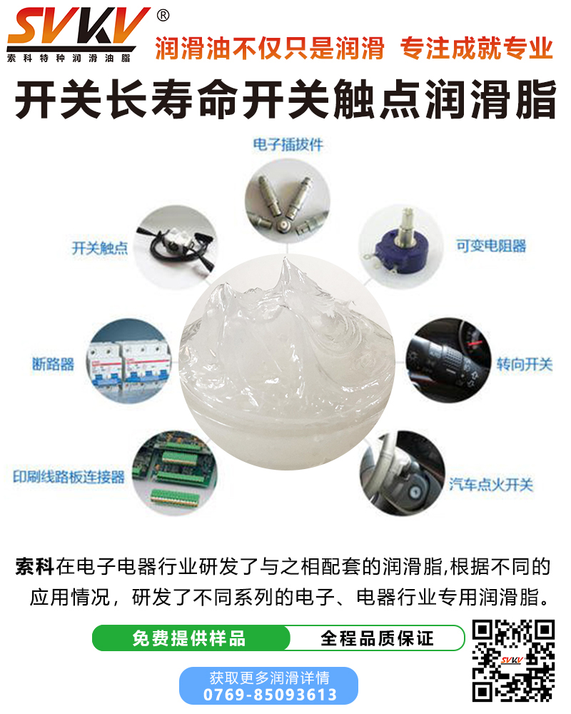 索科SVKV長壽命開關觸點潤滑脂性能優點: