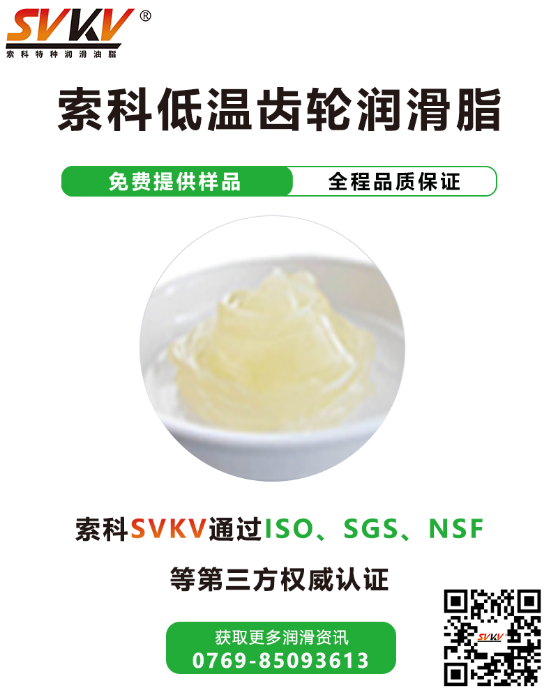 索科SVKV低溫齒輪潤滑脂在低溫-60℃度的環境下仍能有效降低軸承、齒輪及設備的啟動及運行時的扭矩力,是專為嚴寒地區產品設備的齒輪等零部件的潤滑而研制的。