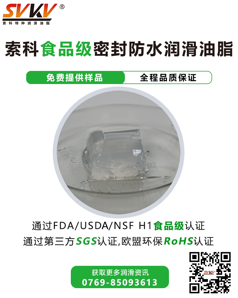 索科SVKV食品級密封防水潤滑油脂符合美國FDA和USDA法規(guī)標準,通過美國USDA/NSF H1食品級認證,無毒無害無味,對魚缸水質(zhì)無污染,保證魚兒安全。
