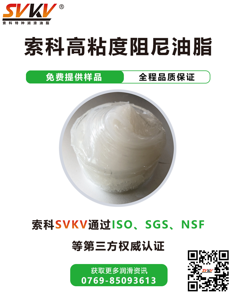 索科SVKV高粘度阻尼油脂是由高純度無機(jī)稠化劑和特殊合成油精制而成的阻尼油脂,無毒符合歐盟環(huán)保要求。索科SVKV高粘度阻尼油脂用于接合部件、允許較大間隙及公差,起到緩沖作用,讓部件順暢精準(zhǔn)轉(zhuǎn)動(dòng)。