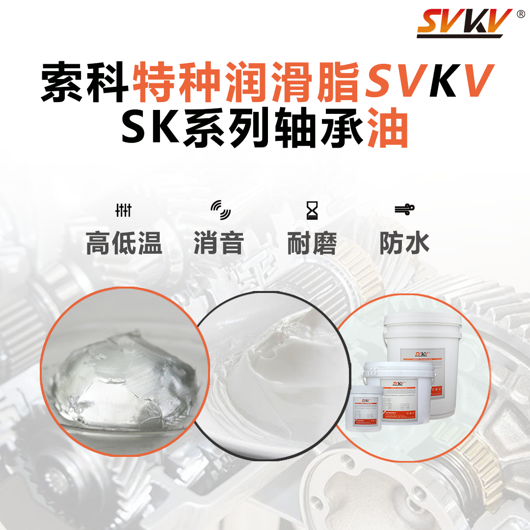 軸承部位的潤滑是為了減小摩擦、降低溫度、延長使用壽命和防止部件磨損。軸承等高速旋轉部件,通常選擇油脂潤滑。使用潤滑油脂時,需要在潤滑部位建立一個潤滑膜,使摩擦表面在液體層的滑動中減少摩擦因素。涂油的方法一般有噴、刷、滴等形式。涂抹軸承時,需要在潤滑蓋板上注入潤滑脂或者油,并且經(jīng)過使用一段時間后,需要將舊潤滑脂或者油及時清除,再重新涂敷新的潤滑劑。推薦索科SVKV SK486/0系列軸承油。采用特殊的全合成油和獨特的添加劑制成。