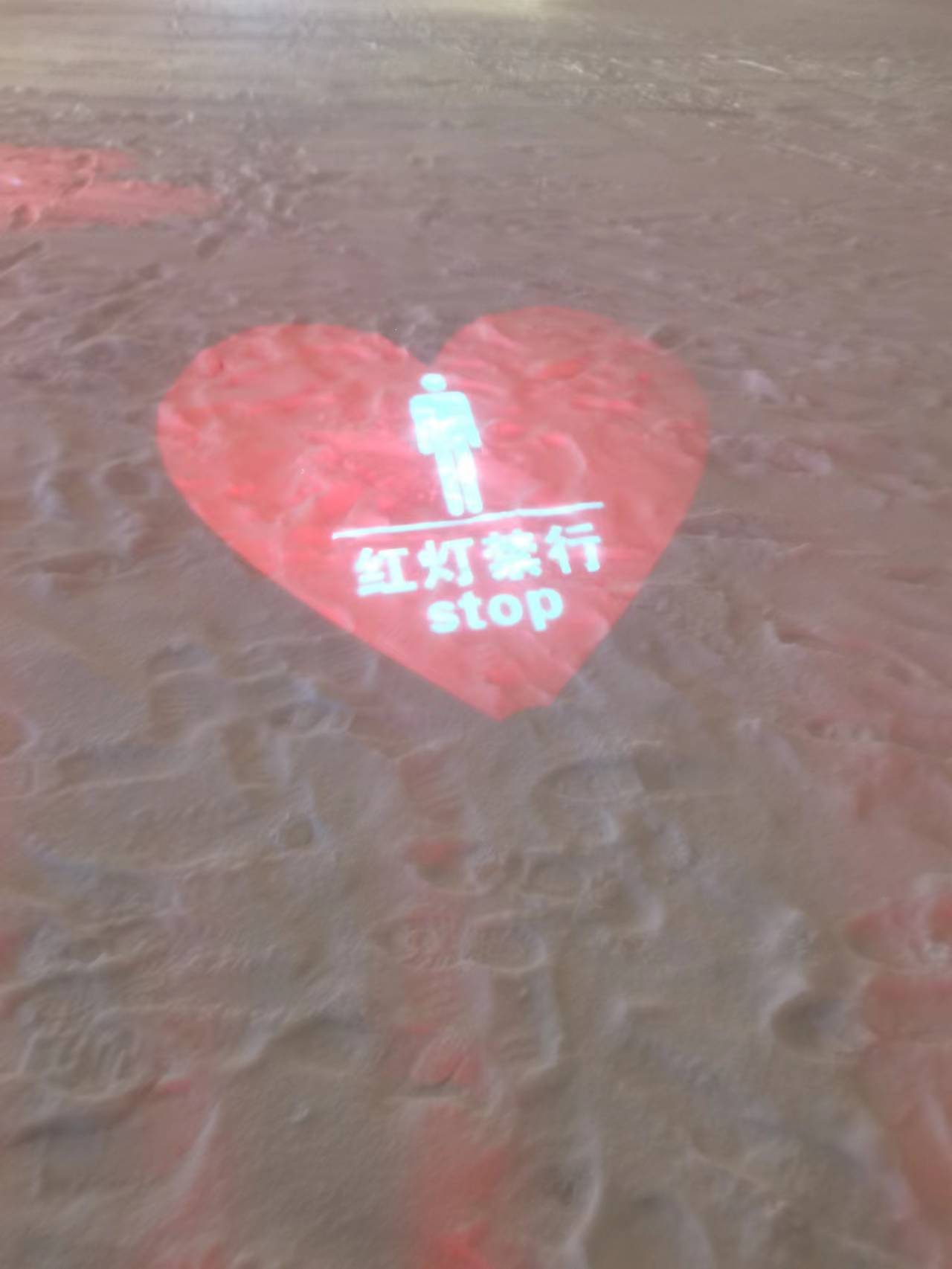 在愛心信號(hào)燈綠燈工作時(shí),設(shè)備投射28條紅色激光線到過街行人小腿處,形成紅色區(qū)域投影,提示機(jī)動(dòng)車駕駛員遠(yuǎn)距離得到紅色警示和發(fā)現(xiàn)行人動(dòng)態(tài),并及時(shí)做出反應(yīng);同時(shí)紅色光線引起行人注意,能夠警醒“低頭族”注意過街安全,從而減少交通意外的發(fā)生